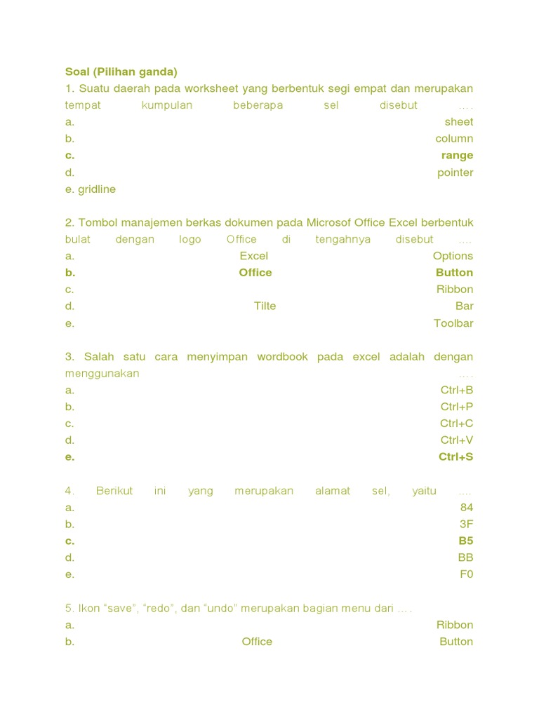Esa121 Pengantar Aplikasi Komputer Page 3 Just Another Departemen Dukungan Pembelajaran Sites Site from esa121.weblog.esaunggul.ac.id Suatu daerah pada worksheet yang berbentuk segi empat dan merupakan tempat kumpulan beberapa sel disebut …. Tombol manajemen berkas dokumen pada microsof office excel berbentuk bulat dengan logo office di tengahnya disebut a. Tombol manajemen berkas dokumen pada microsof office excel berbentuk bulat dengan logo office di tengahnya disebut.… a. Tombol manajemen berkas dokumen pada microsof office excel berbentuk bulat dengan logo office di. Tombol manajemen berkas dokumen pada microsof office excel berbentuk bulat. Microsoft excel soal dan jawaban. Jun 06, 2015 · 2. Tombol manajemen berkas dokumen pada microsof office excel berbentuk bulat dengan logo office di tengahnya disebut.… a.